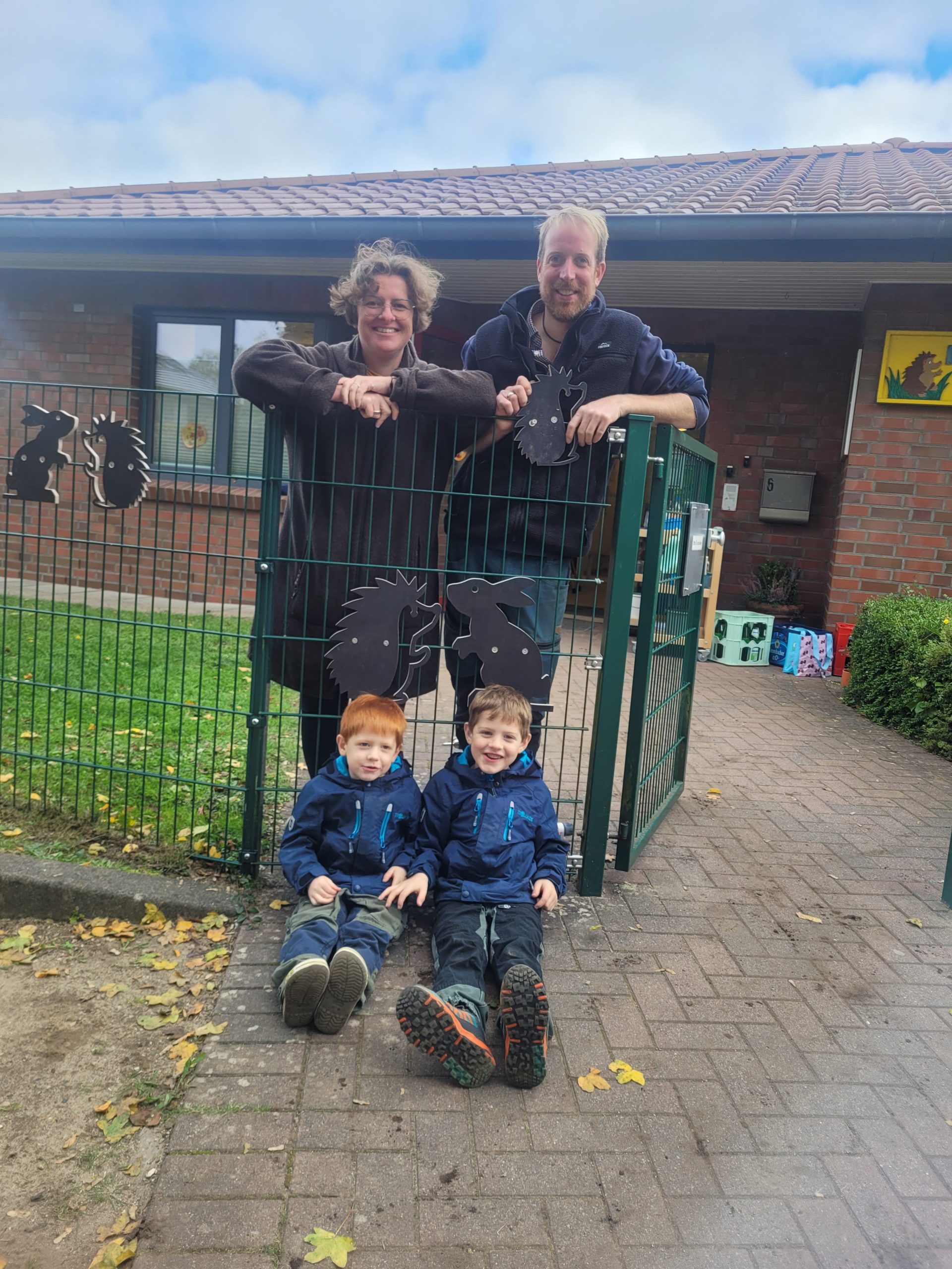 – Die „Gartenzaun-Dekorateure“ : Gerald und Iris Tischler mit ihren beiden Söhnen Magnus und Jorik