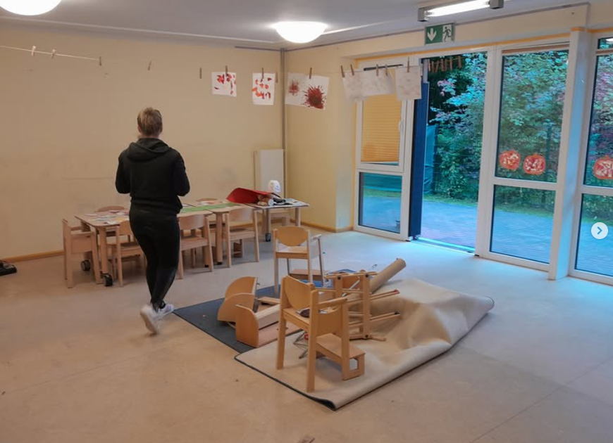 Weil so viele Eltern ihre Hilfe anboten, wurde auch gleich noch der Igel-Gruppenraum gestrichen und der Zaun dekoriert. 🐇🦔